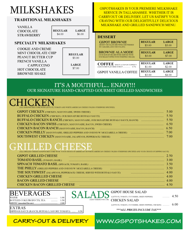 ***ALL PRICES INCLUDE TAX*** ***ALL ORDERS 10.00 DELIVERY MINIMUM*** ***ALL DELIVERIES INCLUDE A 3.00 DELIVERY FEE***